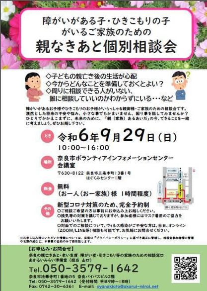 本日、奈良市内にて「親なきあと個別相談会」開催中です。
