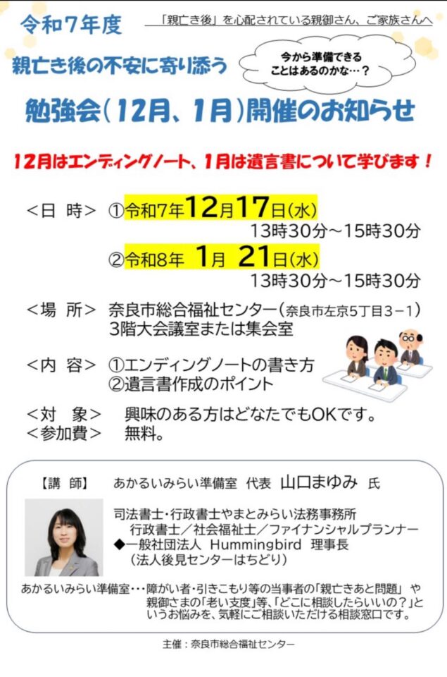 次回の勉強会は年明けの1月、同じく奈良市総合福祉センター様にて開催です。