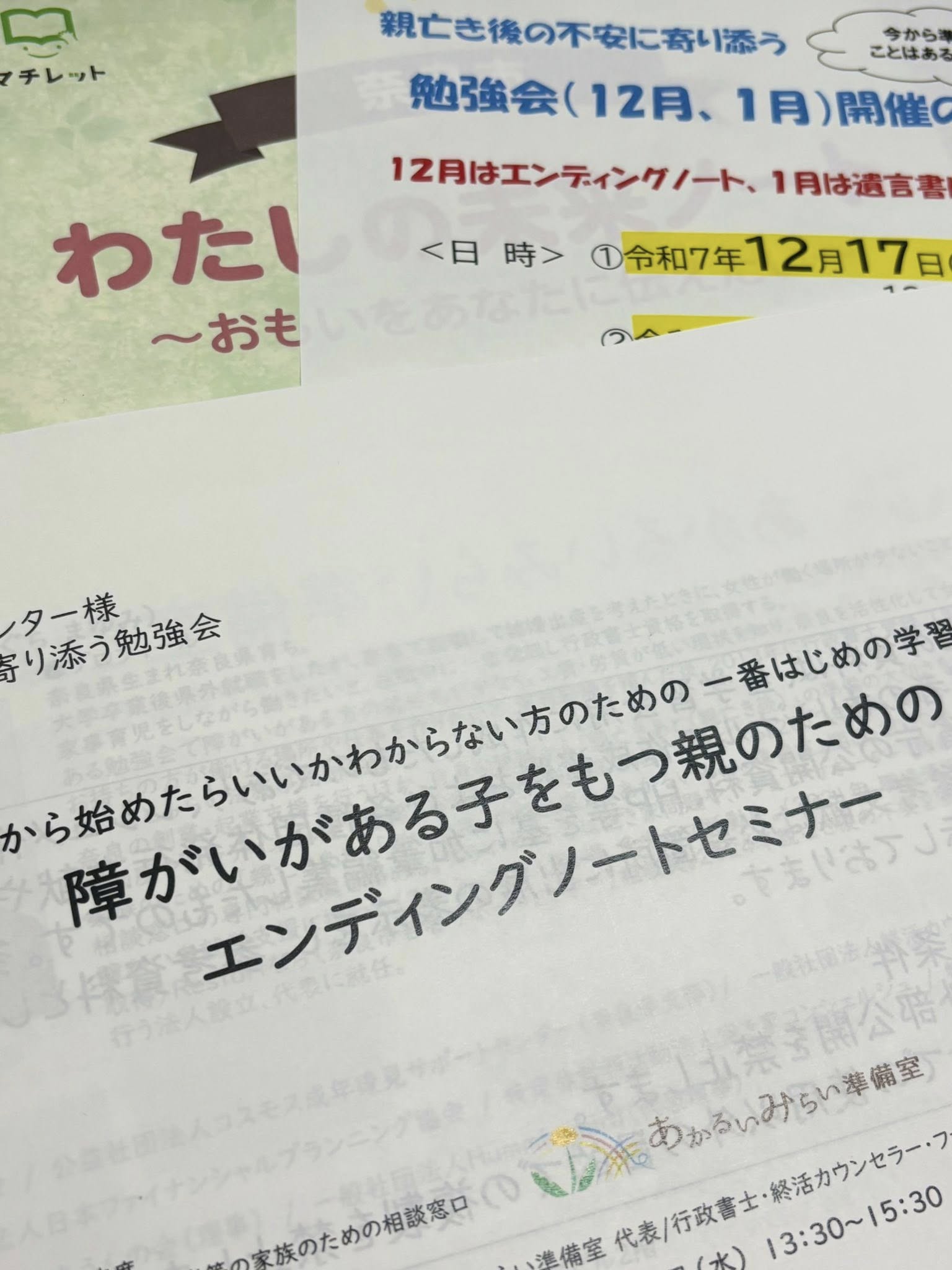 『親亡きあとの不安に寄り添う勉強会』。