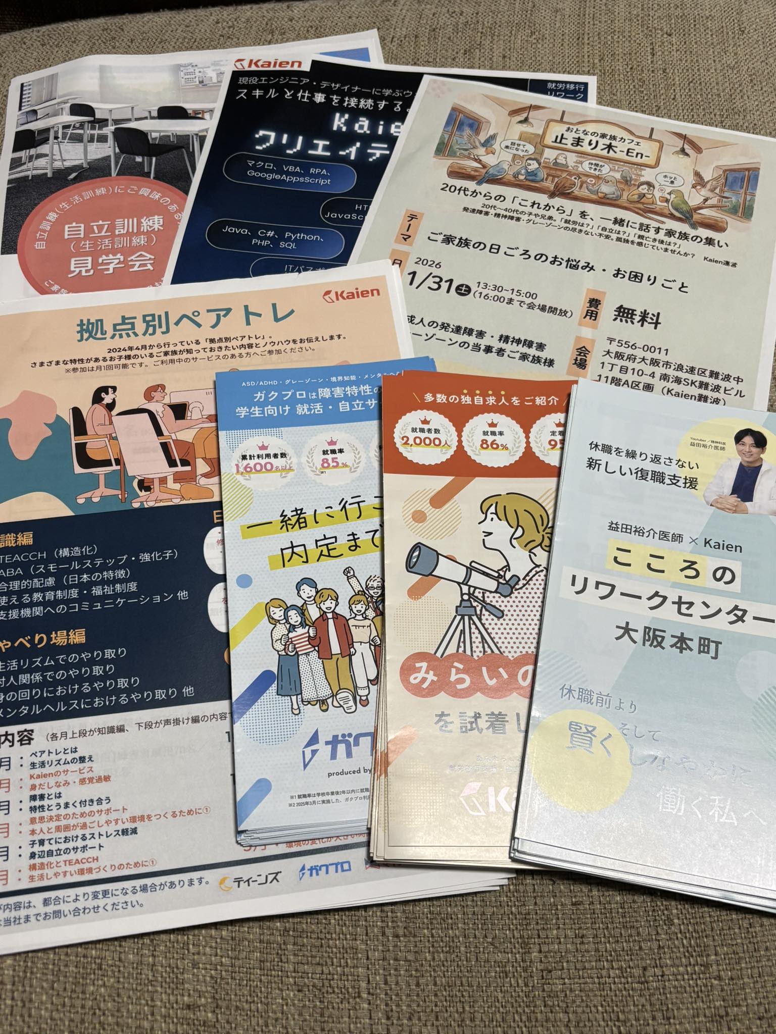 イベントチラシ・リーフレット類をいただきました 2025.12.11 日々のこと 今週当窓口にいただいた、大阪や京都で生きづらさや障がいがある方、 ブランクがある等お仕事探しに不安がある方や学生さん等の サポートをされている事業所様のリーフレットやご家族会等の イベントチラシです。たくさんありがとうございます! いただいたチラシは、学習会や個別相談の場でまた必要とされている方にお渡しさせていただきます #親なきあと相談窓口 #悩みをかかえ孤立する方やご家族をなくしたい #わたしがいなくなってもあなたが笑顔でまいにちをすごせるように #奈良