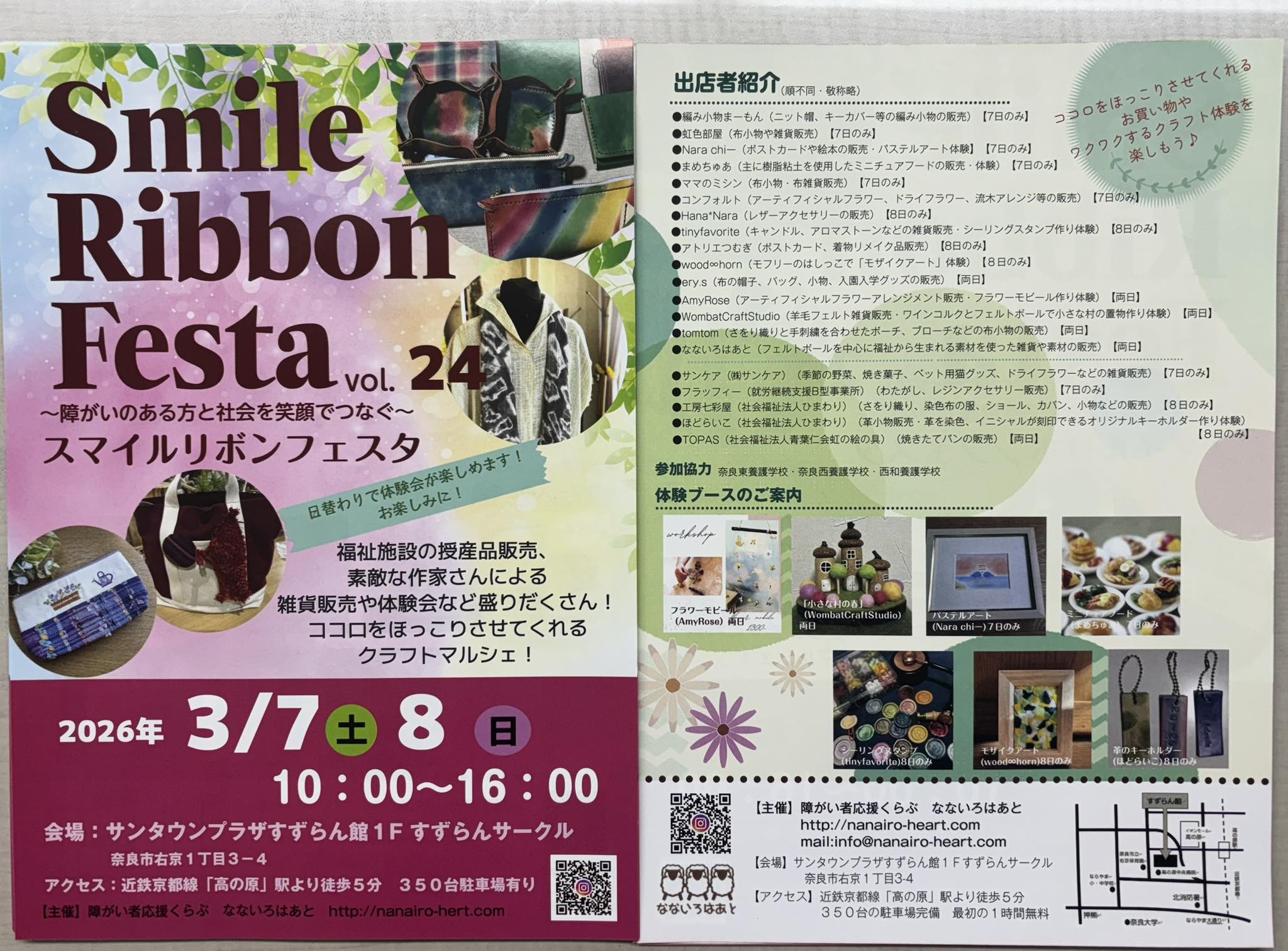 会場には雑貨や食費、手作り作家さんの一点物の作品が並び体験ブースもあるそうですよ。