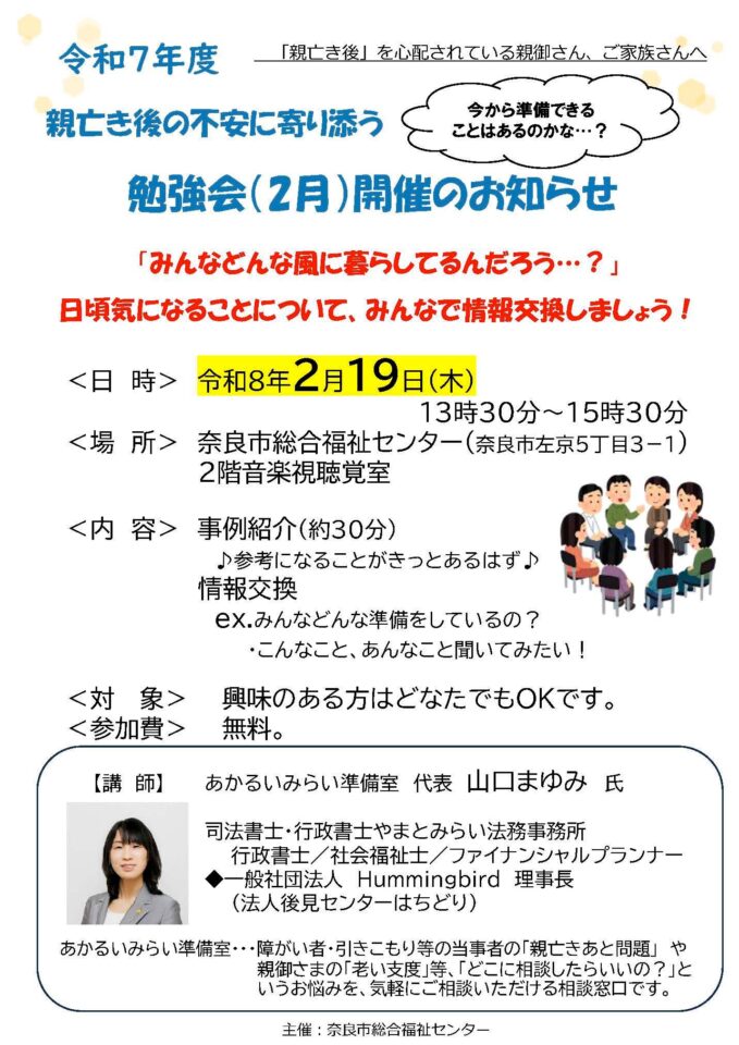 親亡き後の不安に寄り添う勉強会(2月)開催のお知らせ