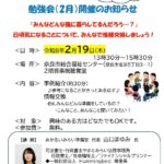 令和7年9月から奈良市社会福祉協議会様主催で 奈良市総合福祉センターにて開催されている 『親なき後の不安に寄り添う勉強会』、2月も開催決定 2月はこれまで参加者様よりご要望が多かった 内容(事例紹介、…
