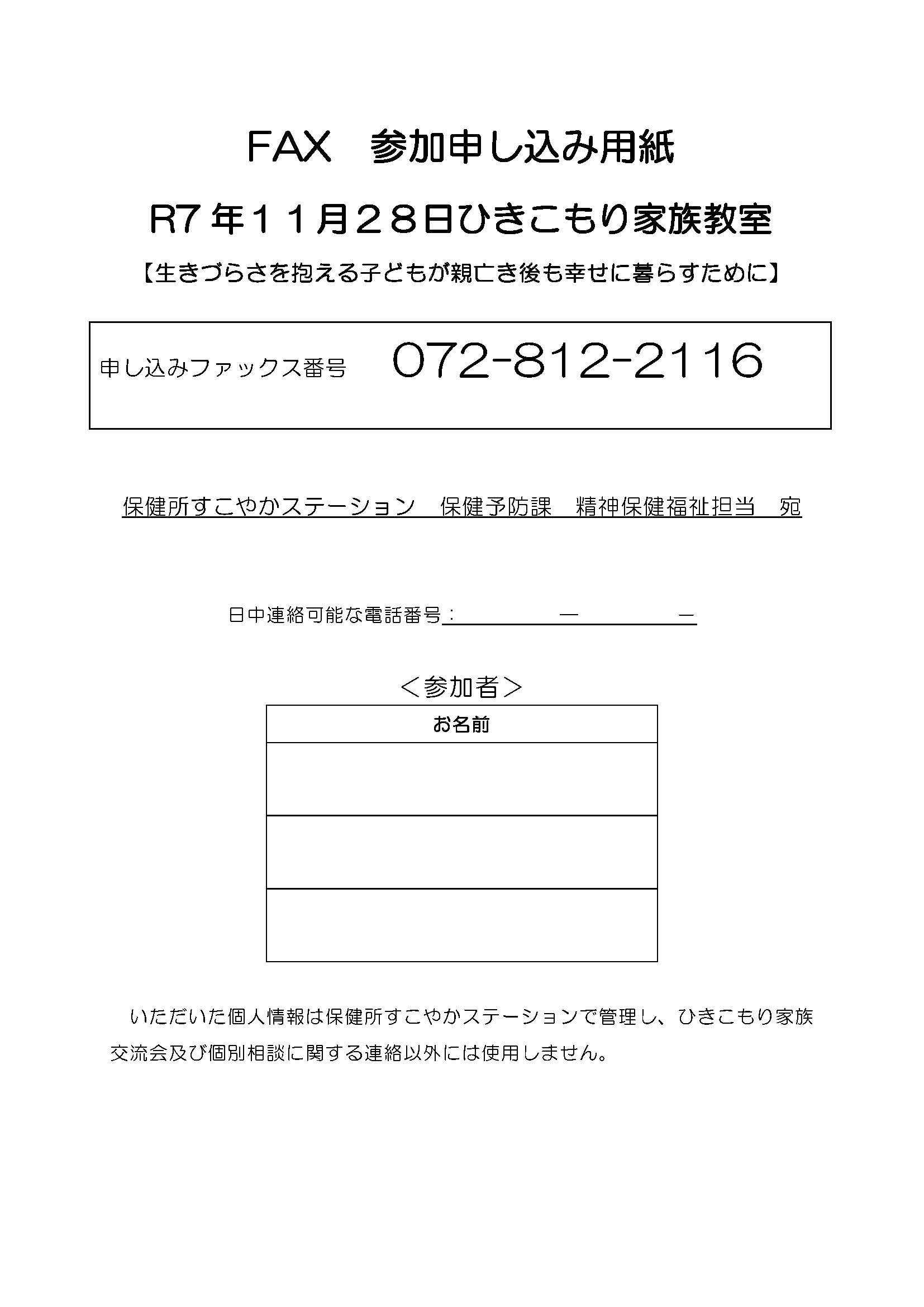 【終了】11/28 『令和7年度ひきこもり家族教室(寝屋川市保健所保健予防課精神保健福祉担当様主催)』開催のお知らせ