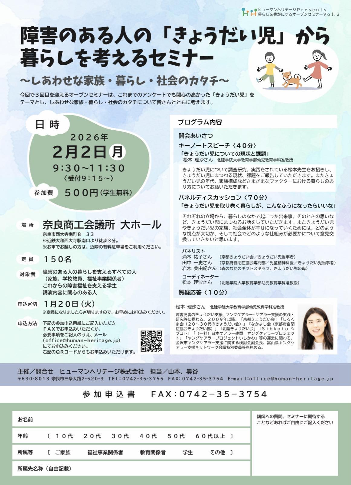 R7/2/2開催 ヒューマンヘリテージ株式会社『障害のある人の「きょうだい児」から暮らしを考えるセミナー』