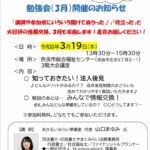 【NEW!】3/19『令和7年度 親亡きあとの不安に寄り添う勉強会(主催:奈良市総合福祉センター様)』開催のお知らせ
