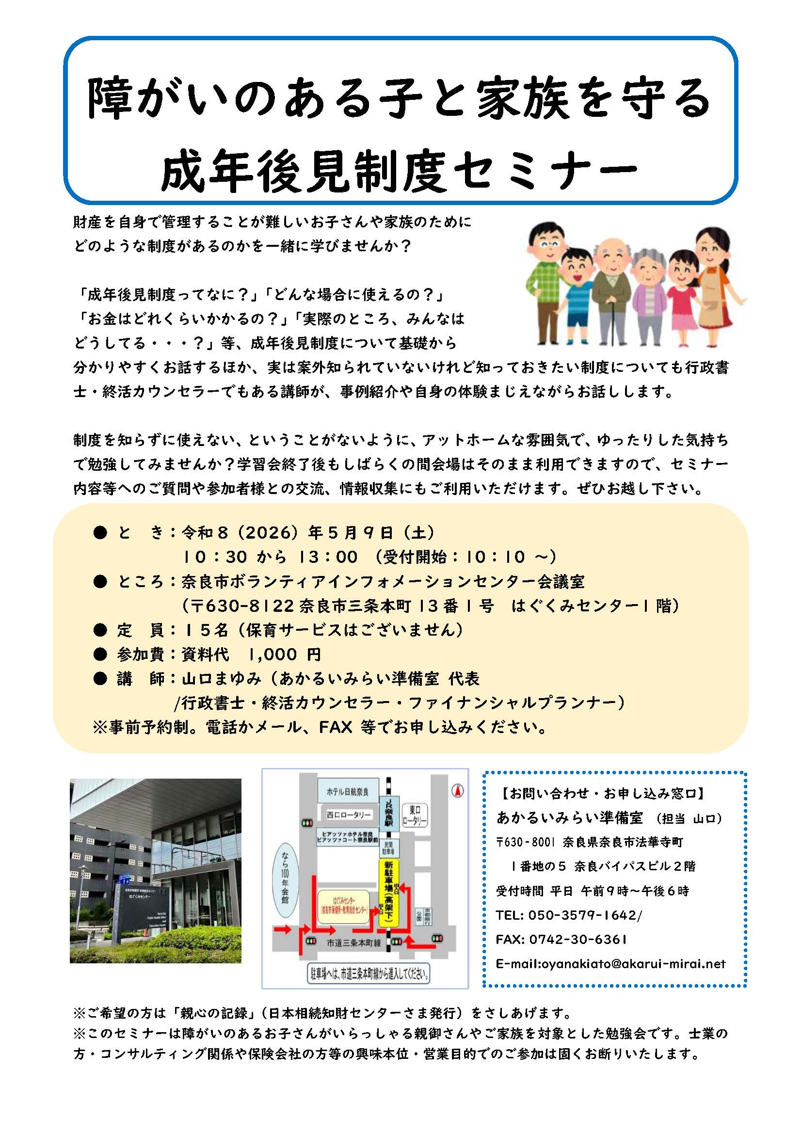 【NEW!】5/9『障がいのある子と家族を守る成年後見制度セミナー』開催のお知らせ
